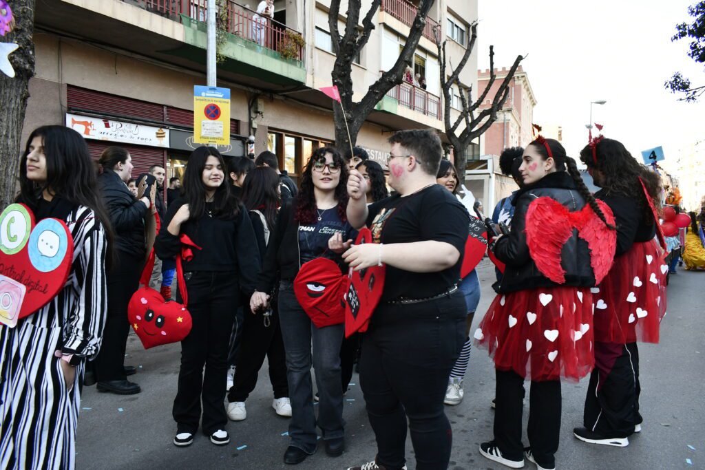 A la rua de Llefià també hi va participar La Rotllana. El grup d’adolescents que van pensar i crear els seus propis vestits per criticar les relacions tòxiques, cada vegada més normalitzades en la nostra societat. A través de la creativitat del Carnestoltes, van voler llançar un missatge clar: cal identificar i qüestionar dinàmiques que poden fer mal.